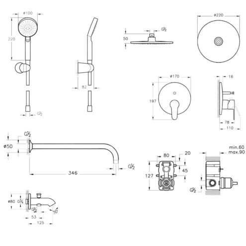 Newarc Aqua Siyah Ankastre Duş Seti