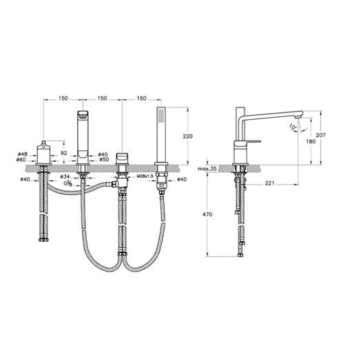 Artema Root Square Bakır El Duşlu Yerden Küvet Bataryası