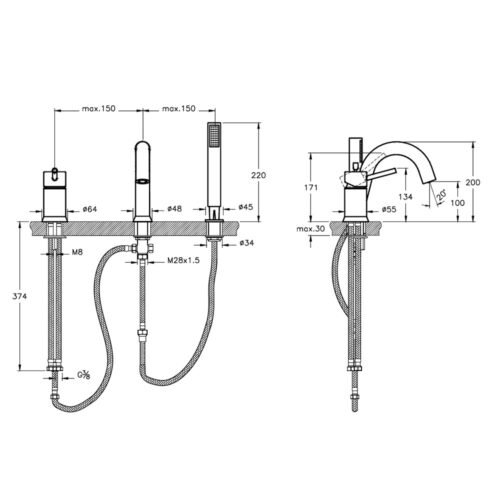 Artema Suit L Bakır Dört Delikli Küvet Bataryası