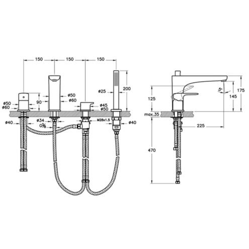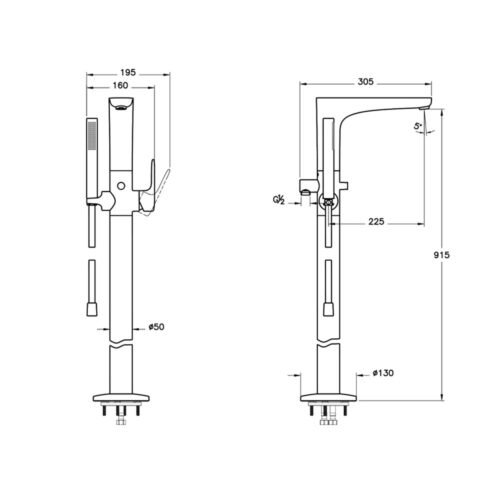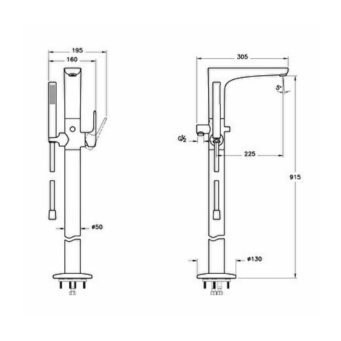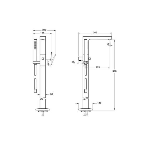 Artema Root Square Krom El Duşlu Yerden Küvet Bataryası