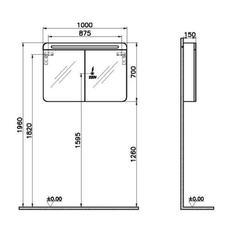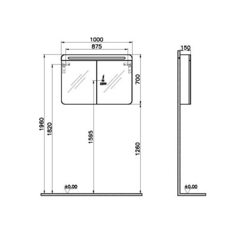 Vitra Core 100 cm Aydınlatmalı Dolaplı Ayna
