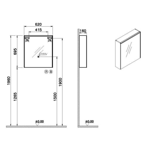 Vitra Core 80 cm Aydınlatmalı Dolaplı Ayna