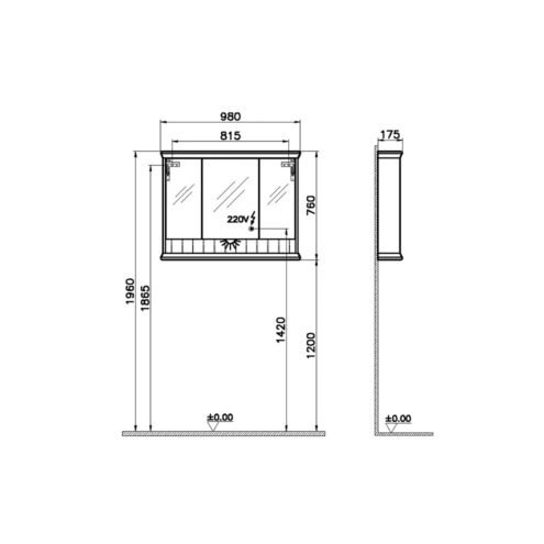 VitrA Valarte 120 cm Mat Gri Ledli Dolaplı Ayna