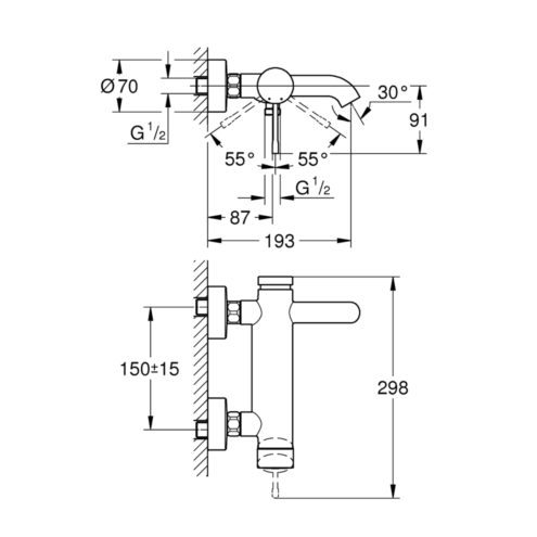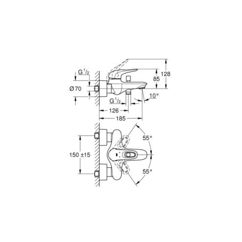 Grohe Eurosmart Krom Banyo Bataryası