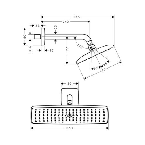 Hansgrohe Raindance E 360 Duvardan 1 Jet Tepe Duşu