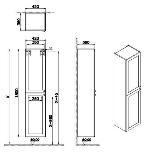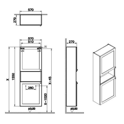 VitrA Root Classic 55 cm Dar Mat Beyaz Boy Dolabı