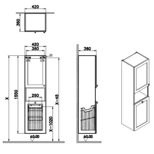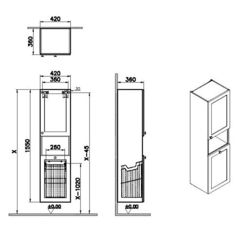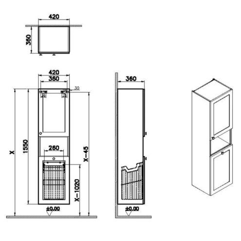 VitrA Root Classic 40 cm Kısa Çamaşır Sepetli Mat Gri Sağ Boy Dolabı