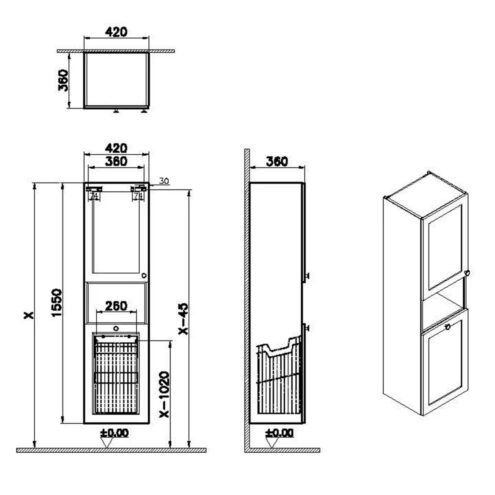 VitrA Root Classic 40 cm Kısa Çamaşır Sepetli Mat Gri Sol Boy Dolabı