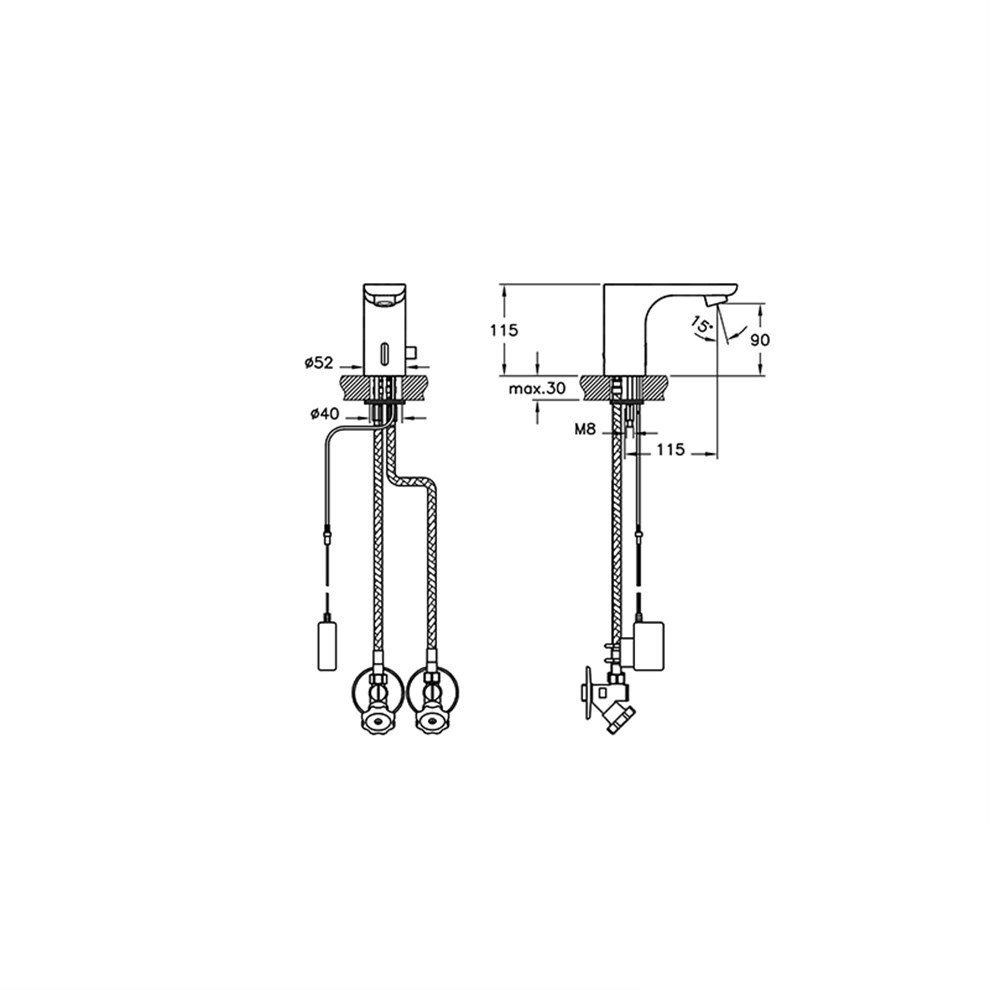 Artema Aquasee Yeni Mod Fotoselli Lavabo Bataryası (Elektrikli – Çift Su Girişli). 6V elektrik ile çalışır.. Sıcak-soğuk su bağlantılıdır.. Çıkış ucu yüksekliği 90 mm’dir.. Çıkış ucu uzunluğu 115 mm’dir.. Sıcaklık ayarı için yandan kumanda volanı.. İki adet metal partikül filtreli ara musluk ve çek valf ürüne dahildir.. Özel debi kısıcılı perlatör sayesinde max. 5 L/dk su akışı sağlanmaktadır.. Armatür merkezi ile lavabo hazne başlangıcı arası max. 70 mm olmalıdır.. Akış başladıktan 60 sn. sonra emniyet amacı ile otomatik olarak su kapanmaktadır.Temizlik için çizici sünger aşındırıcı temizleyiciler çözücü ya da asit içerikli temizleyiciler kireç çözücüler sirke ya da asetik asit içerikli temizleyiciler kullanmayınız. Detaylı bilgi için Whatsapp üzerinden bize ulaşın.