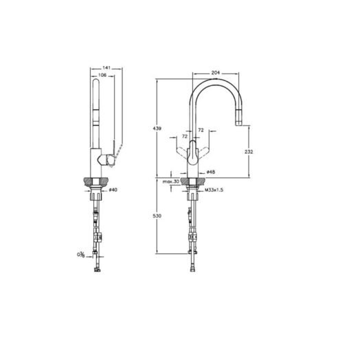 Artema Inox Pull-Down Kuğu Mutfak Eviye Bataryası. Max. 6 L/dk su akışı.. 360° döner boruludur.. Yıkama çevresi 800 mm’dir.. Çıkış ucu uzunluğu 204 mm’dir.. Çıkış ucu yüksekliği 232 mm’dir. Detaylı bilgi için Whatsapp üzerinden bize ulaşın.