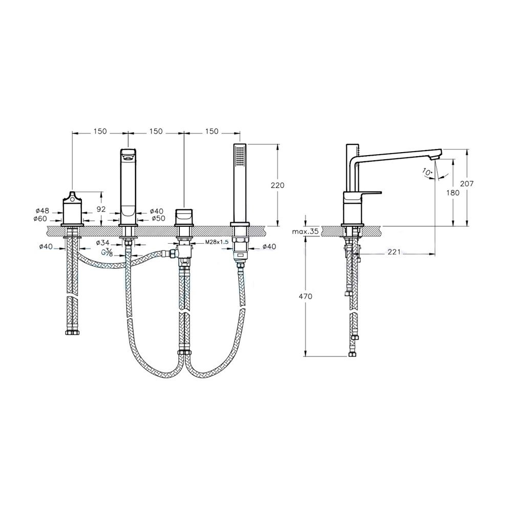 Artema Suit L Bakır Dört Delikli Küvet Bataryası. Çıkış ucu uzunluğu 22 1 cm’dir.. Çıkış ucu yüksekliği 18 cm’dir.. Isı ve debi limitörlü özel kartuş.. 1F el duşu ve Chroma-tech spiral ürüne dahildir.. Spiral uzunluğu 150 cm’dir. Detaylı bilgi için Whatsapp üzerinden bize ulaşın.
