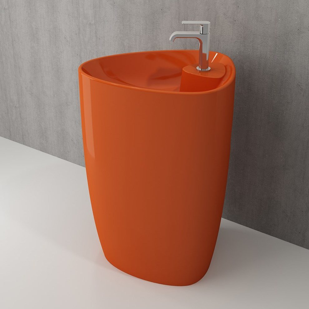 Bocchi Etna Parlak Turuncu Armatür Delikli Monoblok Lavabo. 58×44 cm. Ürün yerden yüksekliği 86 cm. Tek armatür delikli. Garanti süresi 10 yıldır.. Basmalı süzgeç seramik sifon kapağı ve plastik körüklü hortum dahildir.. Sadece yerden  kullanıma uygundur.Ürün boyutları +- 1 cm değişiklik gösterebilir. Detaylı bilgi için Whatsapp üzerinden bize ulaşın.