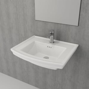 Bocchi Lavita 60 cm Üç armatür delikli Parlak Beyaz Lavabo. 61×50 cm. Üç armatür delikli. Su taşma delikli. 1128 kolon ayak ile birlikte kullanılır. Ağırlık : 20.62 KgÜrün boyutları +- 1 cm değişiklik gösterebilir. Detaylı bilgi için Whatsapp üzerinden bize ulaşın.