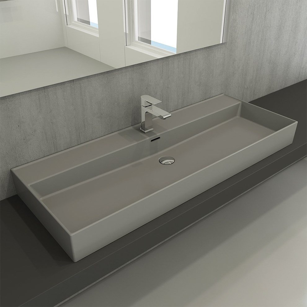 Bocchi Milano 120 cm Mat Gri Lavabo. 1394-xxx-0126 Tek armatür delikli. Su taşma delikli. Tezgah üstü ve asma olarak kullanılabilir. Ayaklı kullanımı yokturÜrün boyutları +- 1 cm değişiklik gösterebilir. Detaylı bilgi için Whatsapp üzerinden bize ulaşın.