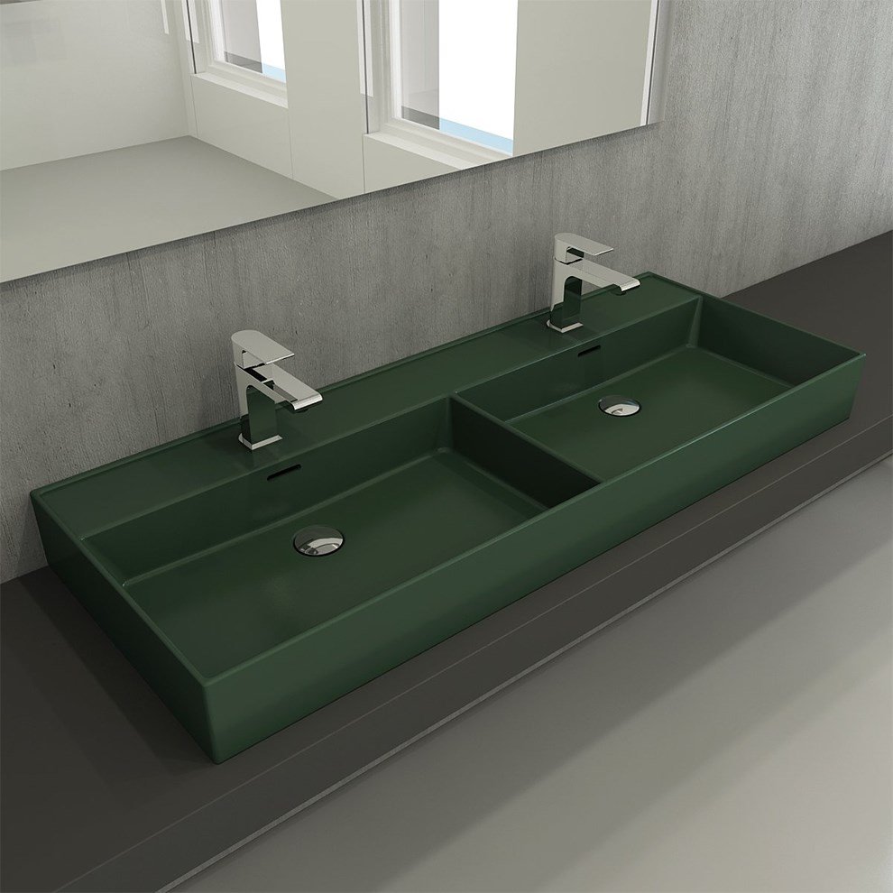 Bocchi Milano 120 cm Mat Yeşil Çift Gözlü Lavabo. Su taşma delikli. Tezgaüstü ve asma kullanıma uygundurÜrün boyutları +- 1 cm değişiklik gösterebilir. Detaylı bilgi için Whatsapp üzerinden bize ulaşın.