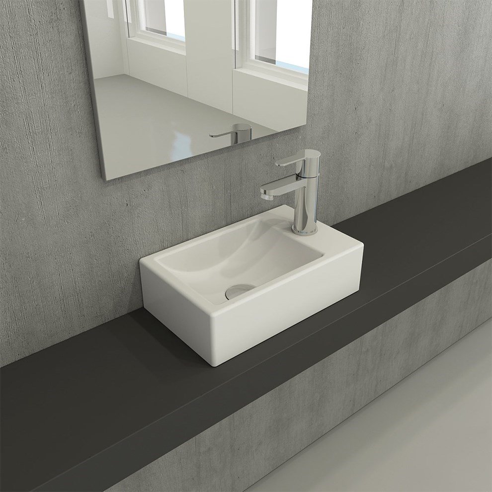 Bocchi Milano 37 cm Mat Beyaz Sağ Armatür Delikli Dar Lavabo. Tek armatür delikli su taşma deliksiz. Asma veya tezgah üstü kullanıma uygundur. Altına dolap uygulanabilirÜrün boyutları +- 1 cm değişiklik gösterebilir. Detaylı bilgi için Whatsapp üzerinden bize ulaşın.