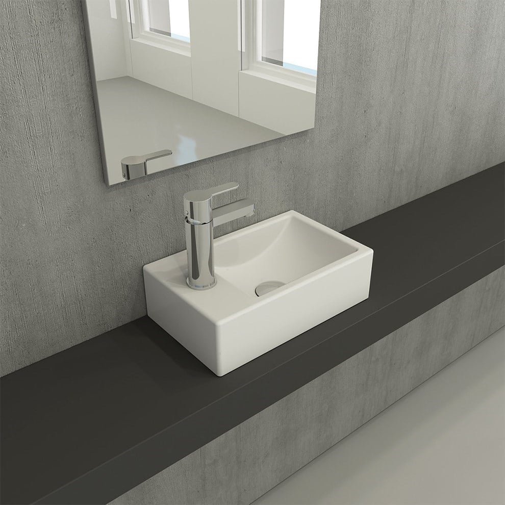 Bocchi Milano 37 cm Mat Beyaz Sol Armatür Delikli Dar Lavabo