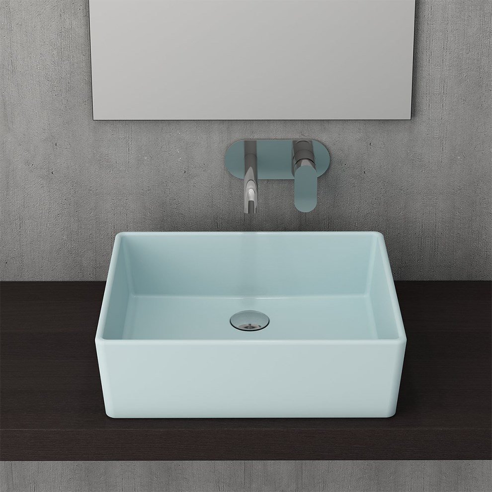 Bocchi Milano 50 cm Mat Buz Mavisi Çanak Lavabo. 50×40 cm. Armatür deliksiz. Su taşma deliksiz. Garanti süresi 10 yıldır.. Sadece tezgah üstü kullanıma uygundur.. Ağırlık 12.48 KgÜrün boyutları +- 1 cm değişiklik gösterebilir. Detaylı bilgi için Whatsapp üzerinden bize ulaşın.