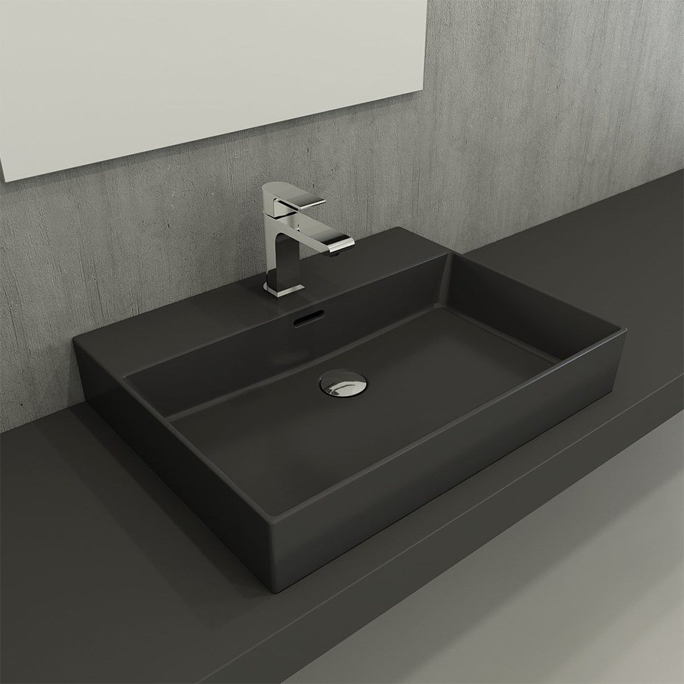 Bocchi Milano 60 cm Mat Antrasit Tezgah Üstü Lavabo. 60 5×46 5 cm. Su taşma delikli. Tezgah üstü ve asma kullanıma uygundurÜrün boyutları +- 1 cm değişiklik gösterebilir. Detaylı bilgi için Whatsapp üzerinden bize ulaşın.