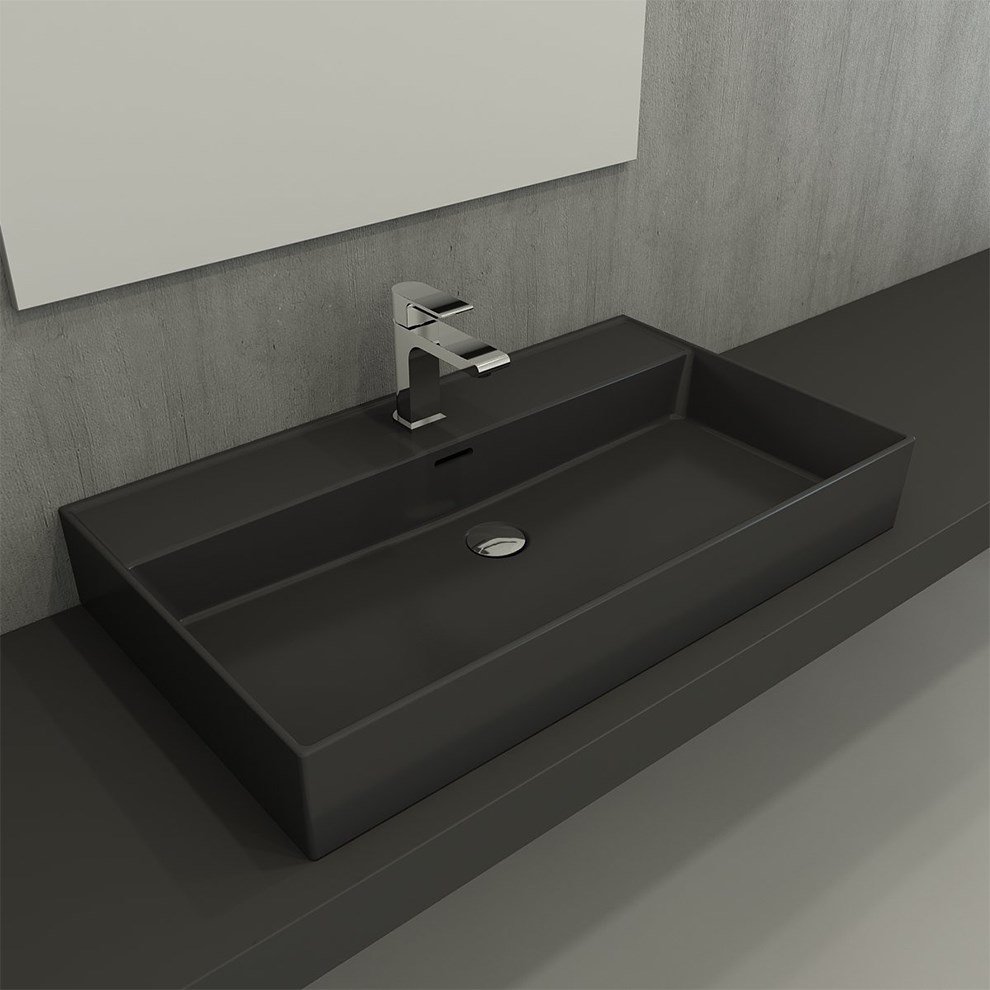 Bocchi Milano 80 cm Mat Antrasit Tezgah Üstü Lavabo. 80 5×46 5 cm. Su taşma delikli. Tezgah üstü ve asma kullanıma uygundurÜrün boyutları +- 1 cm değişiklik gösterebilir. Detaylı bilgi için Whatsapp üzerinden bize ulaşın.