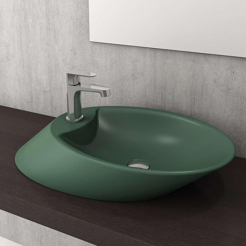 Bocchi Vessel 70 cm Tezgah Üstü Lavabo. 70×40 cm. Mat yeşil. Armatür delikli. Su taşma deliksiz. Sadece tezgah üstü kullanıma uygundur.. Standart lavabo bataryası ile kullanılabilir.. Fiyata armatür ve sifon dahil değildir.Ürün boyutları +- 1 cm değişiklik gösterebilir. Detaylı bilgi için Whatsapp üzerinden bize ulaşın.
