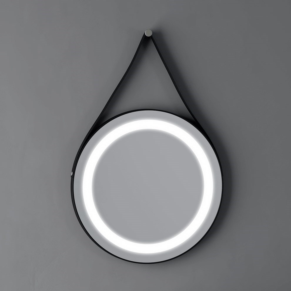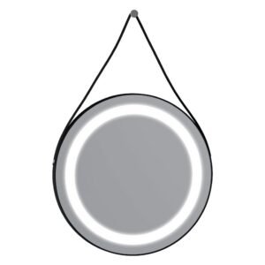 Boden 70 cm Oval Ledli Siyah Deri Çerçeveli Ayna