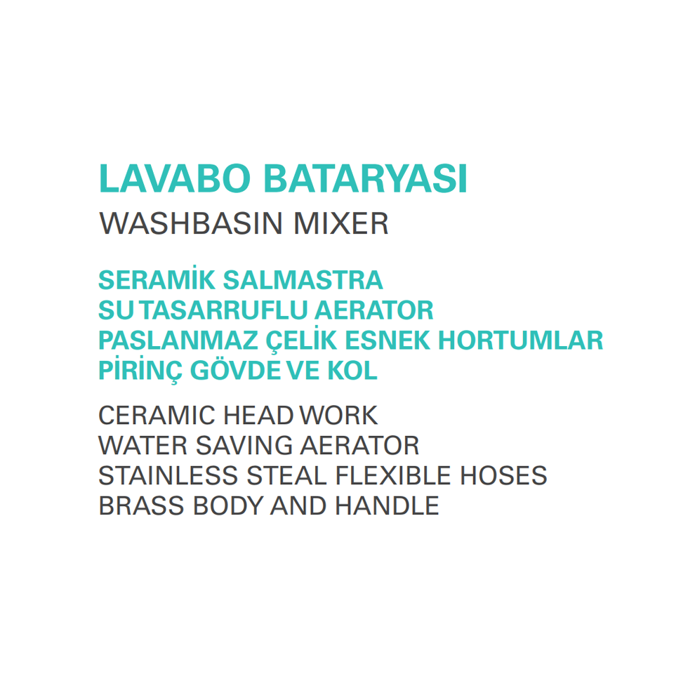 Boden Datum Lavabo Bataryası. Seramik salmastra. Su tasarruflu perlatör. Paslanmaz çelik esnek hortumlar. Pirinç gövde ve kol. Krom Detaylı bilgi için Whatsapp üzerinden bize ulaşın.