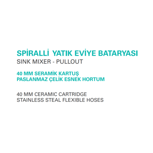 Boden Spiralli Eviye Bataryası. 40 mm seramik kartuşlu. Paslanmaz çelik esnek hortumlu Detaylı bilgi için Whatsapp üzerinden bize ulaşın.