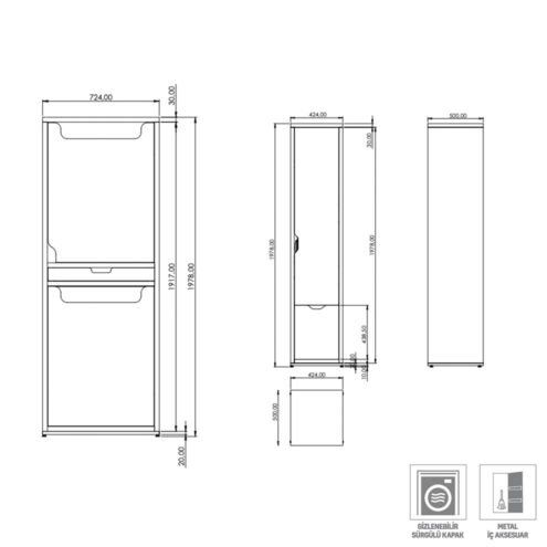 Creavit Çamaşır Kurutma Makinesi ve Mop Temizlik Malzeme Dolabı. Gizlenebilir sürgülü kapak. Metal iç aksesuarlar. Yükseklik: 199 cm. En: (Mop temizlik malzeme dolabı dahil) 115 cm. Renk: Beyaz veya antrasit Detaylı bilgi için Whatsapp üzerinden bize ulaşın.