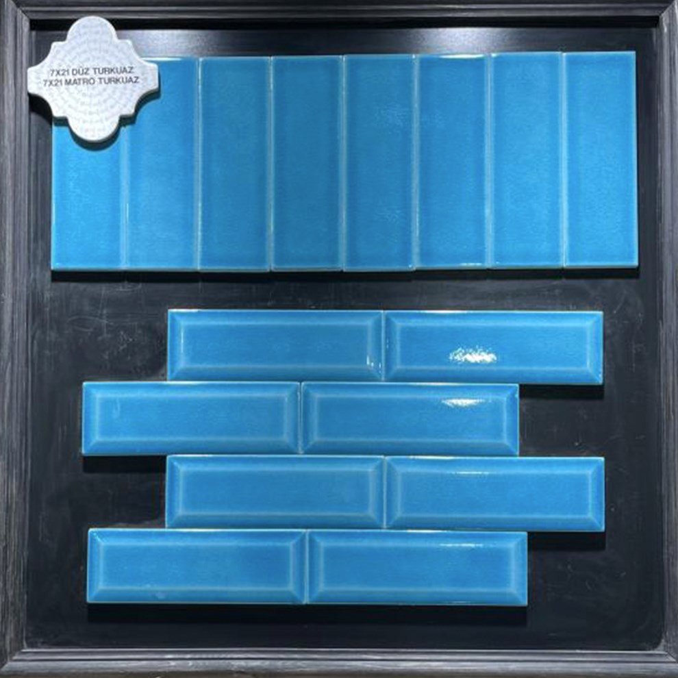 Dekozen Metro 7×21 cm Turkuaz Çatlak Sırlı El Yapımı Seramik. Ölçü: 15×17 cm. Kutu m²: 1 m². 1 m² Adet: 53 Adet. 1 m² Kg: 17 kg. %100 yerli üretimdir.. Ürünler el yapımı seramiktir.. Doğal ve el yapımı üretim olması sebebiyle %5 ton farkları olabilmektedir.Seramiklerin boyut ve renk kodları ambalaj üzerinde yazmaktadır.Siparişlerinizi teslim alırken ürün boyutları ve renk kodlarının aynı olduğundan emin olmanızı tavsiye ederiz.Aksi durumlarda ürünlerin iadesi ve değişimi yapılamamaktadır.Seramik Kullanımında Dikkat Edilmesi GerekenlerSeramik ürününüzü aldığınızda kalite ile ilgili bir sorun olduğunu düşünüyorsanız bize acilen numune ulaştırınız.Fazla kalan seramiklerin bir kısmını daha sonra olası tadilatlarda kullanmak için lütfen saklayınız.Seramiklerin üzerinde kullanımdan dolayı oluşacak kirleri ve yağları temizlik dostu malzemeler ile temizleyiniz. Tuz ruhu kireç çözücü gibi çok ağır asitler barındıran temizlik ürünlerini kesinlikle kullanmayınız.Ürünlerimizi flex derz dolgu ve seramik yapıştırıcısı ile iç mekanlarınızdaki ıslak veya kuru alanlarda çok rahatlıkla kullanabilirsiniz.Sipariş Verirken Dikkat Edilmesi Gereken KonularSipariş esnasında fire miktarını hesaplayarak siparişinizi veriniz. Eksik kalması durumunda ilave vereceğiniz siparişiniz renk tonu ve ebatı ilk gelen siparişinizle aynı olmayabilir.Ürünlerimizin genelinde artistik bir sır olan çatlak sır kullanmaktayız. Bu kılcal çatlamalar uygulamadan sonra da devam edebilir. Bu kılcal satlaklar ürünün kalitesizliğini göstermez.Metalik sırlı ürünlerimiz ağır kimyasal içeren temizlik malzemelerine karşı dirençli değildir.Vereceğiniz RAL koduna veya renk numunesine göre size özel renklerde ürünler üretebiliriz.İnternet sitemizden vereceğiniz siparişteki ürün resimlerindeki renk ile size gelen nihai ürün rengi arasında değişiklik gösterebilir.Siparişinize karar veremiyorsanız lütfen bizden numune talep ediniz.Üretim esnasında çevreye ve insan sağlığına zarar veren ağır metaller içeren kimyasallar kesinlikle kullanılmamaktadır.Ürünlerimizin Uygulaması Nasıl Yapılır?Şekilli seramiklerimiz genelde duvar kullanımı için uygundur.Uygulamayı yapacak kişinin ustalık becerisi çok önemlidir. Daha önce bu tarz ürünlerin uygulamasını yapmış ustaları seçmenizi öneririz.Uygulama yapılacak alanın ölçüsü çok iyi alınmalıdır ve sipariş verilirken firenin de ilave edilmesi unutulmamalıdır.Sizin için özel olarak el emeği yoğun bir şekilde üretilmiş siparişiniz elinize ulaştığında ürünün siparişinizdeki ürün olup olmadığını ve miktarını lütfen kontrol ediniz.Ürünü nasıl döşemek istediğinize karar vermeden önce yere birkaç m² diziniz. Nasıl döşeyeceğinize karar verdikten sonra uygulamaya başlayınız.El emeği yoğun bir üretim prosesimiz olduğu dolayı ürünlerin kendi içinde çok ufak ebatlı farklılıklar olabilir. Bu küçük farklılıkları ders ile minimize edilebilir.Lütfen uygulama yapılacak alanın düz olduğundan emin olunuz.İstediğiniz boşlukta derz kullanabilirsiniz.Islak alanlarda ise nem ve su yalıtımı sağlayacak kaliteli bir flex yapıştırıcı ve flex derz dolgusu kullanmanızı tavsiye ederiz.Uygulama esnasında hava durumu çok önemlidir.Uygulama esnasında hava sıfırın altında ise yani suyun donma derecesinde uygulama yapmayınız.Sıcak havalarda ise geç kuruyan flex yapıştırıcı ve derz dolguları tercih ediniz.Uygulama esnasında lastik tokmak kullanmanızı öneriyoruz.Uygulama aşağıdan yukarı yapılmalıdır. Detaylı bilgi için Whatsapp üzerinden bize ulaşın.