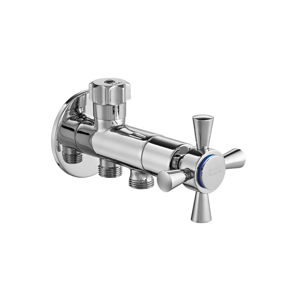 ECA Quadrille Klozet Musluğu. Rozet dahildir. Rezervuar çıkışı yıldız volan ile kontrol edilir. Klozet çıkışı Quadrille volan ile kontrol edilir. Çıkışlar G 3/8 dir. Rozet bağlantı arası 26 mm – 56 mm ´dir. 180º seramik salmastralıdır Detaylı bilgi için Whatsapp üzerinden bize ulaşın.”