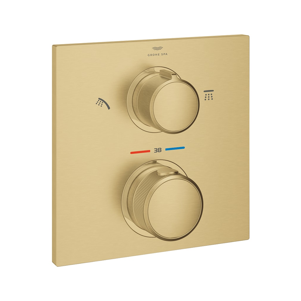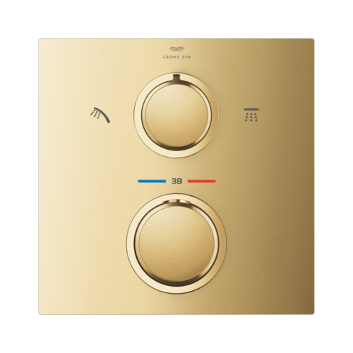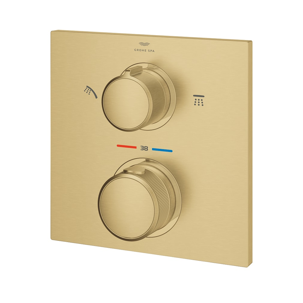 Grohe Allure İki Yönlü Ankastre Termostatik Brushed Cool Sunrise Banyo ve Duş Bataryası. Montaj için: Rapido Smartbox iç gövde 35604. TurboStat ile sabit sıcaklık. Uzun ömürlü parlak kaplama. FastFixation rozet (gizli montaj ve sabitleme vidaları). Metal rozeti 6° sağa sola ayarlanabilir. Banyo ve duş sembolü. SafeStop 38°C’de sabitlenebilir sıcaklık. SafeStop Plus ilave 43°C veya 46°C’ye kadar sabitleyici ısı ayarı. İki çıkış için yön değiştirici rozet ve sızdırmazlık contası. Metal volan. Akış performansı:çıkış B = 27 l/minçıkış C = 30 l/min. İç gövde hariç. Tepe ve el duşu için yön gösterici ikonİşlevlerin zarif cezbedici formla buluştuğu yeni Grohe Allure koleksiyonu en iyisini isteyenler içindir. İnce ayrıştırıcı profili ve organik geçişleriyle Allure’un estetik yapısı sizi kendine çağırır. Sezgisel kontrol ile muhteşem hassasiyetin buluştuğu bu özel koleksiyonda üstün performans ve yüksek kullanıcı konforu bir arada sunuluyor. Tepe ve el duşu arasında zahmetsizce geçiş yapmanızı sağlamak için tasarlanan ve Almanya’da üretilen bu termostatik duş bataryası dış gövdesi banyonuzu tamamlayan kusursuz bir son dokunuştur. Gömme montaj ile yerden kazandıracak şekilde tasarlanmıştır. Suyu istediğiniz çıkışa zahmetsizce yönlendirirken aynı anda suyun hacmini de ayarlayabilmenizi sağlayan Grohe AquaDimmer ile akışı kolayca kontrol edin. Grohe TurboStat teknolojisi sayesinde rahatsız edici değişimler yaşamadan istediğiniz sıcaklıkta hızlı ve sürekli su akışı elde edebilirsiniz. Çocuklu evler için muhteşem bir tercihtir. Grohe SafeStop devre dışı bırakma düğmesi 38°C olarak ayarlandığı için haşlanma riski ortadan kalkar. Grohe SafeStop Plus opsiyonel sıcaklık sınırlayıcı ise ekstra güvenlik için 43°C veya 46°C’lik bir sınır daha eklemenize olanak tanır. Grohe Fast Fixation kilitleme sistemine sahip rozet ve gizli sızdırmazlık elemanı montajın hızlı ve kolay olmasını sağlar. Çizilmeye karşı ekstra dayanıklı Grohe StarLight PDV kaplama bu banyo bataryası yepyeni görünümünü uzun yıllar boyunca korur. Yeni Grohe Allure: hassasiyetin şekle ve işleve dönüşmüş hali. Bu dış gövde Grohe Rapido SmartBox (35600/35604) ile monte edilmek için tasarlanmıştır. Ayrı satılır. Artık endişelenmenize hiç gerek yok! Bu kombine ankastre montaj çözümü sızıntıya karşı %100 güvenlidir. Detaylı bilgi için Whatsapp üzerinden bize ulaşın.