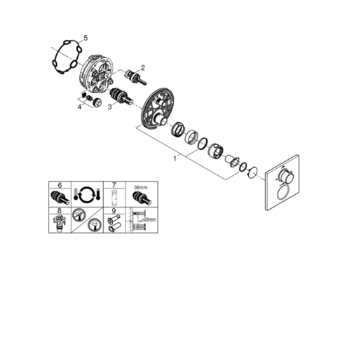 Grohe Allure Termostatik Ankastre Krom Duş Banyo Bataryası. Rapido Smartbox iç gövde 35604. TurboStat ile sabit sıcaklık. FastFixation rozet (gizli montaj ve sabitleme vidaları). Metal rozeti 6° sağa sola ayarlanabilir. SafeStop 38°C’de sabitlenebilir sıcaklık. SafeStop Plus ilave 43°C veya 46°C’ye kadar sabitleyici ısı ayarı. İki çıkış için yön değiştirici rozet ve sızdırmazlık contası. Metal volan. Akış performansı:çıkış B = 27 l/minçıkış C = 30 l/min. İç gövde hariçModern alanlarda eksiksiz ve güvenilir duş deneyimi sunmak üzere tasarlanan Grohe Allure bataryayla ayarlama yapın rahatlayın ve haz verici anlar yaşayın. İnce ayrıştırıcı profili ve organik geçişleriyle Allure’un estetik yapısı sizi kendine çağırır. Sezgisel kontrol ile muhteşem hassasiyetin buluştuğu bu özel koleksiyonda üstün performans ve yüksek kullanıcı konforu bir arada sunuluyor. El duşu ve banyo çıkışı arasında zahmetsizce geçiş yapmanızı sağlamak için tasarlanan ve Almanya’da üretilen bu termostatik duş bataryası dış gövdesi banyonuzu tamamlayan kusursuz bir son dokunuştur. Gömme montaj ile yerden kazandıracak şekilde tasarlanmıştır. Suyu istediğiniz çıkışa zahmetsizce yönlendirirken aynı anda suyun hacmini de ayarlayabilmenizi sağlayan Grohe AquaDimmer ile akışı kolayca kontrol edin. Grohe TurboStat teknolojisi sayesinde rahatsız edici değişimler yaşamadan istediğiniz sıcaklıkta hızlı ve sürekli su akışı elde edebilirsiniz. Çocuklu evler için muhteşem bir tercihtir. Grohe SafeStop devre dışı bırakma düğmesi 38°C olarak ayarlandığı için haşlanma riski ortadan kalkar. Grohe SafeStop Plus opsiyonel sıcaklık sınırlayıcı ise ekstra güvenlik için 43°C veya 46°C’lik bir sınır daha eklemenize olanak tanır. Grohe Fast Fixation kilitleme sistemine sahip rozet ve gizli sızdırmazlık elemanı montajın hızlı ve kolay olmasını sağlar. Göz alıcı ve sağlam Grohe StarLight krom kaplama bu banyo bataryası yepyeni görünümünü uzun yıllar boyunca korur. Yeni Grohe Allure: hassasiyetin şekle ve işleve dönüşmüş hali. Bu dış gövde Grohe Rapido SmartBox (35600/35604) ile monte edilmek için tasarlanmıştır. Ayrı satılır. Artık endişelenmenize hiç gerek yok! Bu kombine ankastre montaj çözümü sızıntıya karşı %100 güvenlidir. Detaylı bilgi için Whatsapp üzerinden bize ulaşın.