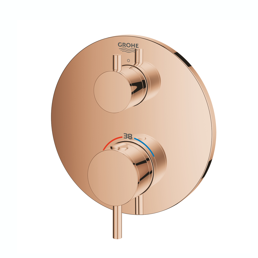 Grohe Atrio Ankastre Termostatik Warm Sunset Banyo Bataryası. Montaj için: Rapido Smartbox iç gövde 35604. TurboStat ile sabit sıcaklık. Uzun ömürlü parlak kaplama. FastFixation rozet (gizli montaj ve sabitleme vidaları). Metal rozeti 6° sağa sola ayarlanabilir. SafeStop 38°C’de sabitlenebilir sıcaklık. SafeStop Plus ilave 43°C veya 46°C’ye kadar sabitleyici ısı ayarı. Entegre çek valf ve filtre. Seramik stop valf 120°. Akış performansı:çıkış B = 27 l/minçıkış C = 30 l/min. İç gövde hariç Detaylı bilgi için Whatsapp üzerinden bize ulaşın.