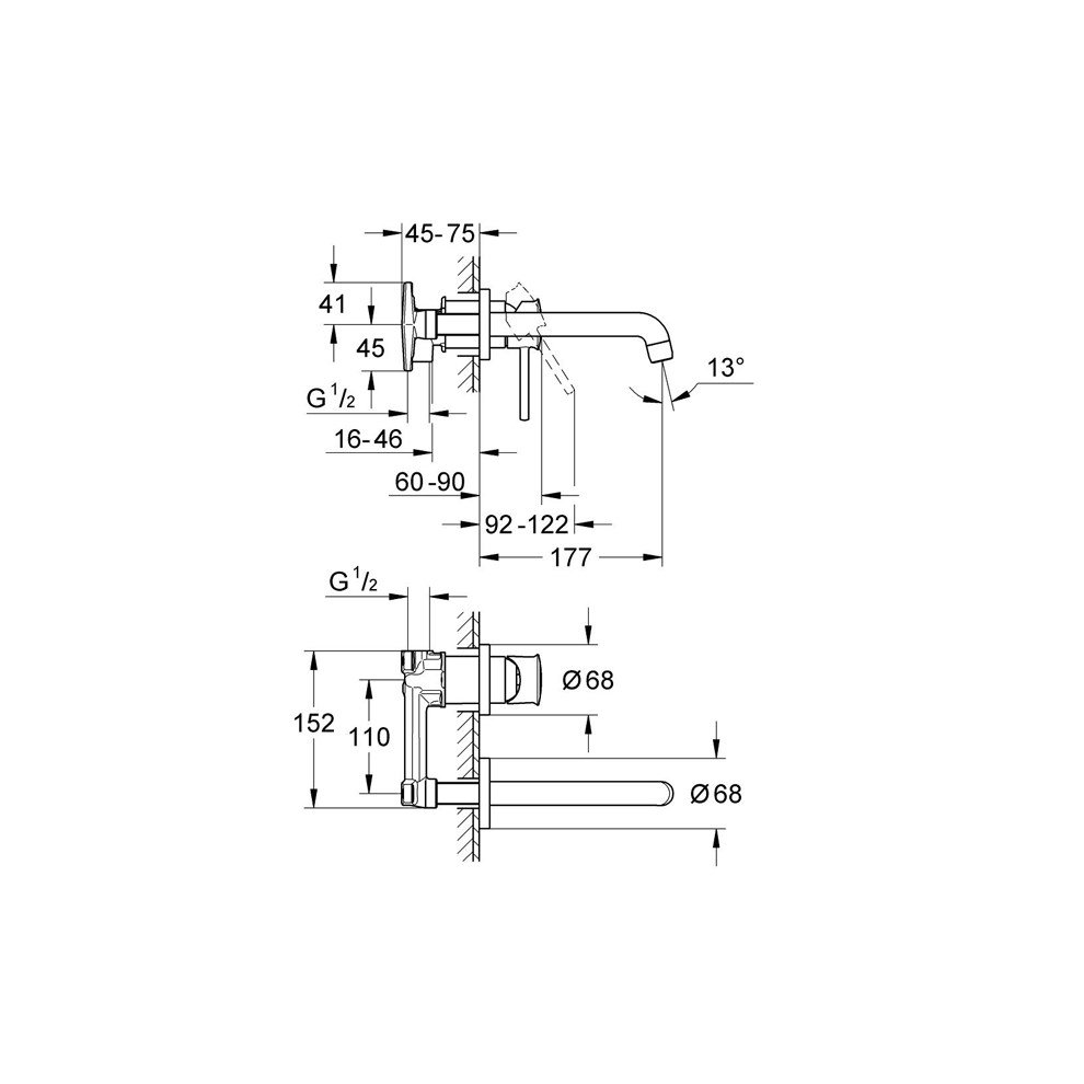 Grohe BauClassic 2 Delikli Lavabo Bataryası. Duvar tipi (ankastre). İçerdiği parçalar: iç gövde ve dış gövde (sıva altı grubu dahildir.). Metal kumanda kolu. 35 mm seramik kartuş. Krom kaplama. Perlatörlü. Merkezler arası uzaklık 110 mm. Çıkış ucu uzunluğu 166 mmTemizlik için çizici sünger aşındırıcı temizleyiciler çözücü ya da asit içerikli temizleyiciler kireç çözücüler sirke ya da asetik asit içerikli temizleyiciler kullanmayınız. Detaylı bilgi için Whatsapp üzerinden bize ulaşın.