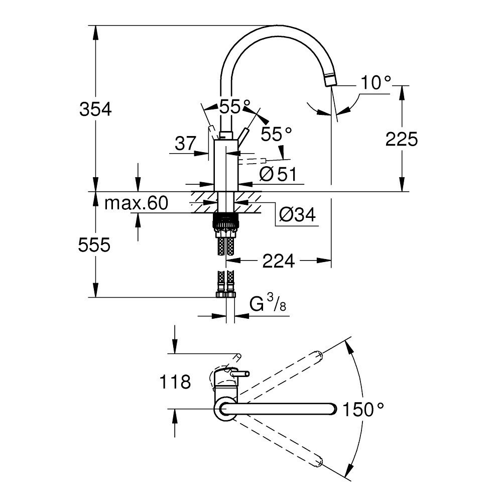 Grohe Concetto Döner Borulu Eviye Bataryası. Döner çıkış ucu. Yüksek çıkış ucu. Spiral bağlantı hortumları. Ayarlanabilir akış limitleyici. Seçilebilir hareket ekseni: 0° – 150°. Grohe StarLight krom kaplama. Grohe FastFixation hızlı montaj sistemi. Grohe SilkMove 35 mm seramik kartuş. Grohe Zero izole edilmiş iç su yolları – kurşun ve nikel içermez Detaylı bilgi için Whatsapp üzerinden bize ulaşın.