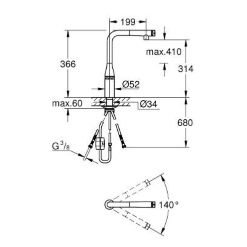 Grohe Essence Smart Control Brushed Cool Sunrise Eviye Bataryası. Uzun ömürlü parlak kaplama. SmartControl. Gövde üzerinde sıcaklık ayarı için valf. Döner çıkış ucu. Hareket ekseni 140°. Entegre çek valf. İzole edilmiş iç su yolları- kurşun ve nikel içermezGROHE Essence SmartControl bataryayla mutfağınıza hafif bir dokunuşla çalışan sezgisel kontrol katın. İnce ve şık yapısı tek delikli montaj için tasarlanmıştır. Yenilikçi SmartControl özelliği sayesinde yalnızca bir düğmeye basarak su akışını başlatabilir ve durdurabilirsiniz. Su hacmini su tasarrufu sağlayan ekonomik mod ve tam akış arasında ayarlamak için ise düğmeyi çevirmeniz yeterlidir. Yalnızca dirseğinizle veya bileğinizle dokunarak ellerinizi kullanmadan da suyu açabilirsiniz. Sıcaklık batarya gövdesinde yer alan karıştırma valfiyle kolayca ayarlanır. Batarya L şeklinde yüksek çıkış ucu sayesinde büyük kapları veya vazoları doldurmak için geniş ve rahat bir çalışma alanı sunar. 360° dönebilen çıkış ucu büyük ya da çift hazneli eviyeler için idealdir. Düz akışa sahip spiralli sprey başlığı ilave esneklik sağlayarak su sıçratmadan sebzeleri hazırlamayı ve eviyeyi temizlemeyi kolaylaştırır. GROHE Magnetic Docking özelliği işiniz bittiğinde sprey başlığının takılmadan yerine geri çekilmesini sağlar. Esnek bağlantı hortumlarına sahip GROHE QuickFix Plus hızlı montaj sistemi sayesinde montaj işleminin çabuk ve basit olacağından emin olabilirsiniz. Bu monoblok mutfak bataryası çizilmeye dayanıklı ekstra bir katman için fiziksel buhar biriktirme (PVD) teknolojisi kullanan dayanıklı GROHE StarLight kaplamaya sahiptir. Detaylı bilgi için Whatsapp üzerinden bize ulaşın.
