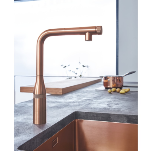 Grohe Essence Smart Control Brushed Warm Sunset Eviye Bataryası. Uzun ömürlü parlak kaplama. Gövde üzerinde sıcaklık ayarı için valf. Döner çıkış ucu. Hareket ekseni 140°. Entegre çek valf. Spiral bağlantı hortumları. İzole edilmiş iç su yolları kurşun ve nikel içermezBasma düğmesiyle çalışan GROHE Essence SmartControl batarya ile hayallerinizdeki minimal mutfağı yaratın. İnce ve şık yapısı tek delikli montaj için tasarlanmıştır. Yenilikçi SmartControl özelliği sayesinde yalnızca bir düğmeye basarak su akışını başlatabilir ve durdurabilirsiniz. Su hacmini su tasarrufu sağlayan ekonomik mod ve tam akış arasında ayarlamak için ise düğmeyi çevirmeniz yeterlidir. Yalnızca dirseğinizle veya bileğinizle dokunarak ellerinizi kullanmadan da suyu açabilirsiniz. Sıcaklık batarya gövdesinde yer alan karıştırma valfiyle kolayca ayarlanır. Batarya L şeklinde yüksek çıkış ucu sayesinde büyük kapları veya vazoları doldurmak için geniş ve rahat bir çalışma alanı sunar. 360° dönebilen çıkış ucu büyük ya da çift hazneli eviyeler için idealdir. Düz akışa sahip spiralli sprey başlığı ilave esneklik sağlayarak su sıçratmadan sebzeleri hazırlamayı ve eviyeyi temizlemeyi kolaylaştırır. GROHE Magnetic Docking özelliği işiniz bittiğinde sprey başlığının takılmadan yerine geri çekilmesini sağlar. Esnek bağlantı hortumlarına sahip GROHE QuickFix Plus hızlı montaj sistemi sayesinde montaj işleminin çabuk ve basit olacağından emin olabilirsiniz. Bu monoblok mutfak bataryası çizilmeye dayanıklı ekstra bir katman için fiziksel buhar biriktirme (PVD) teknolojisi kullanan dayanıklı GROHE StarLight kaplamaya sahiptir. Detaylı bilgi için Whatsapp üzerinden bize ulaşın.