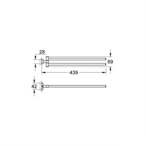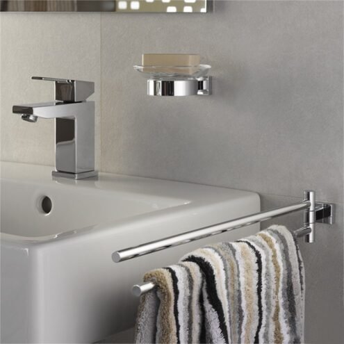 Grohe Essentials Cube İkili Havluluk. Metal. 439 mm. İki kollu hareketli. Duvardan montaj. GROHE StarLight® krom kaplamaGROHE ESSENTİALS CUBE HAVLULUK – HAVLULAR İÇİN ALANI İKİ KATINA ÇIKARINŞık bir pakette zarif ve basit bir çözüm olarak sunulan GROHE Essentials Cube iki döner kollu havluluk havlularınızı banyo lavabonuzun yanında kurutmak vesaklamak için idealdir. Minimalist bir banyo tasarımı için mükemmel bir seçenek olan havluluk göz alıcı ve dayanıklı GROHE StarLight krom kaplama ile kaplanmıştır ve kusursuz görünümünü uzun yıllar boyunca korur. Detaylı bilgi için Whatsapp üzerinden bize ulaşın.