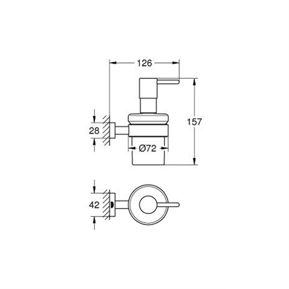 Grohe Essentials Cube Sıvı Sabunluk. Metal. Buzlu cam kap. Duvardan montaj. GROHE StarLight® krom kaplama Detaylı bilgi için Whatsapp üzerinden bize ulaşın.