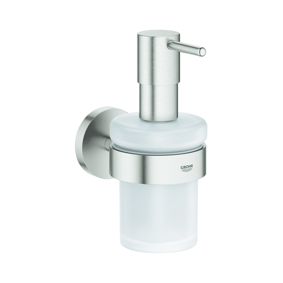 Grohe Essentials Paslanmaz Çelik Sıvı Sabunluk Ve Tutacak. 160 ml hacim. Sabunluk tutacağı 40 369 001. Sıvı sabunluk 40 394 001. Uzun ömürlü parlak kaplama Detaylı bilgi için Whatsapp üzerinden bize ulaşın.