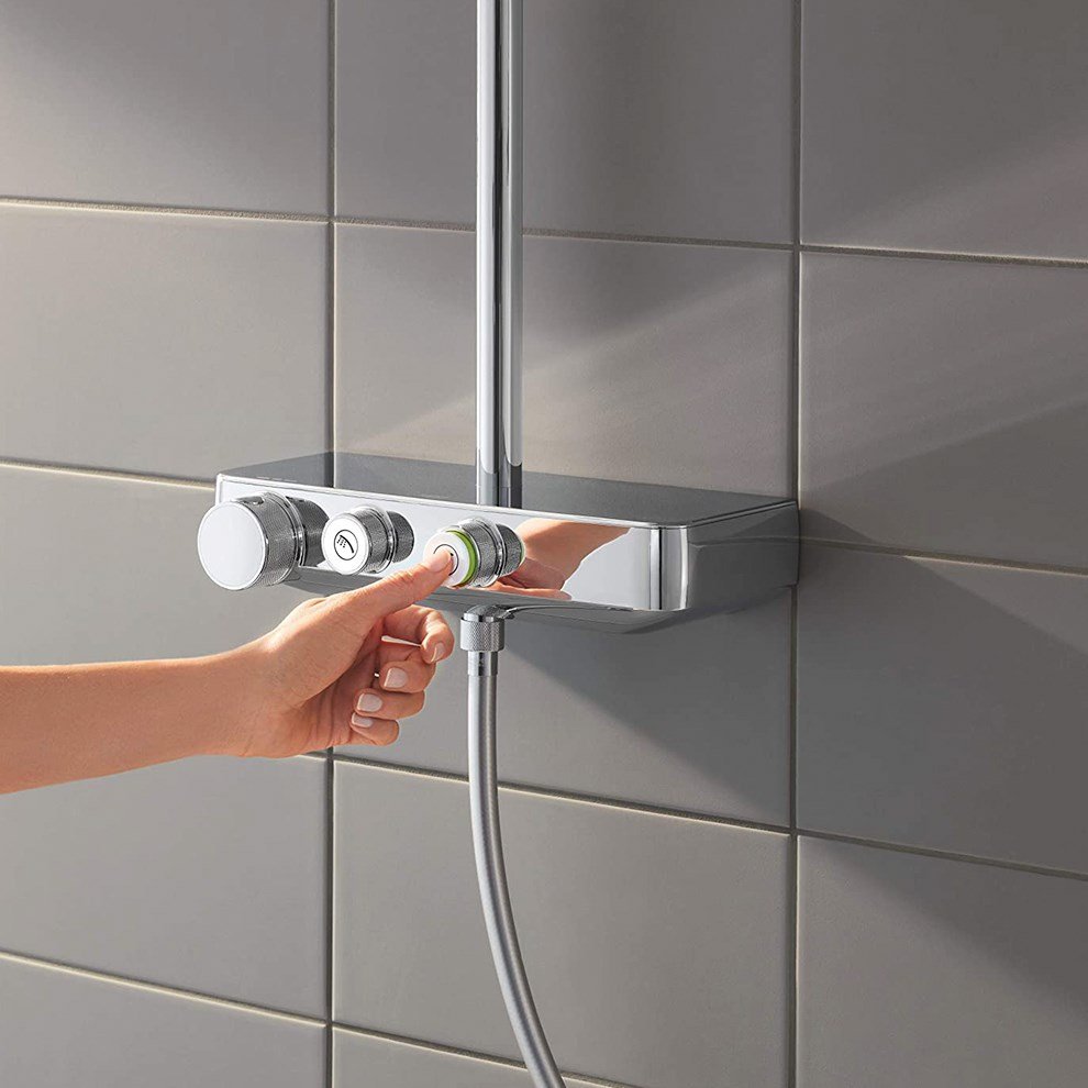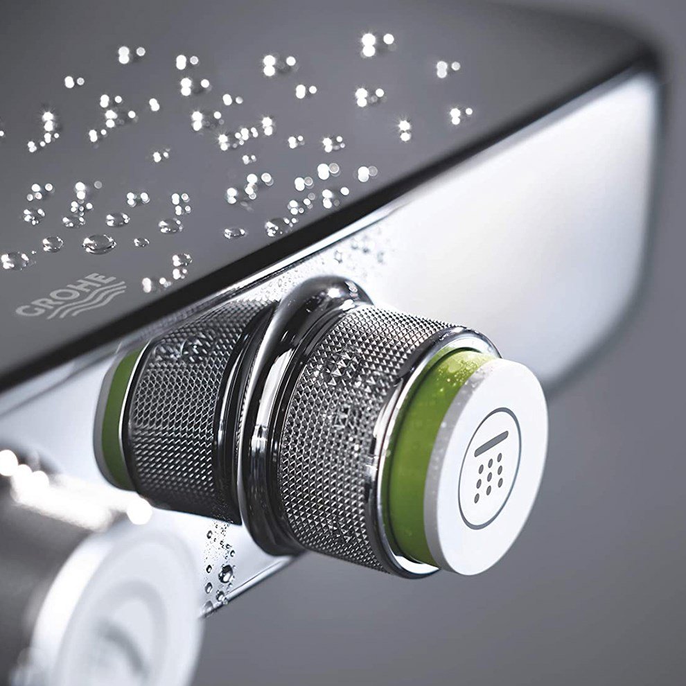 Grohe Euphoria Smartcontrol System 260 Mono Termostatik Bataryalı Duş Kolonu. Yatay duş kolu 450 mm. Mevcut deliklere minimum adaptasyon için üst braket ayarlanabilir. Sıva üstü SmartControl termostatik batarya. Euphoria 260 tepe duşu (26455) 3 akış şekli: Rain SmartRain Jet. Mafsallı. ± 15° dönüş açısı. Euphoria 110 Massage el duşu beyaz sprey plakası ile (27221001). 3 akış şekli: Rain SmartRain Massage. Ayarlanabilir yükseklik. Silverflex duş hortumu 1750 mm (28388000). Grohe DreamSpray mükemmel akış. Grohe StarLight krom kaplama. Grohe CoolTouch el yakmayan yüzey. Grohe TurboStat ile sabit sıcaklık. Grohe EcoJoy daha az su tüketimi ve mükemmel akış teknolojisi. – 38°C de Grohe SafeStop. Açma-kapama için SmartControl buton EcoJoy su tasarruflu. Akıştan tam akışa kadar hacim ayarlaması yapmak için kullanılır. SpeedClean kireç kırıcı sistem. Uzun ömür için Inner WaterGuide. Twistfree – dolanmayan hortum. Şok ısıtıcılar için uygun. 18kW/h. En düşük akış miktarı 7 l/dk Detaylı bilgi için Whatsapp üzerinden bize ulaşın.