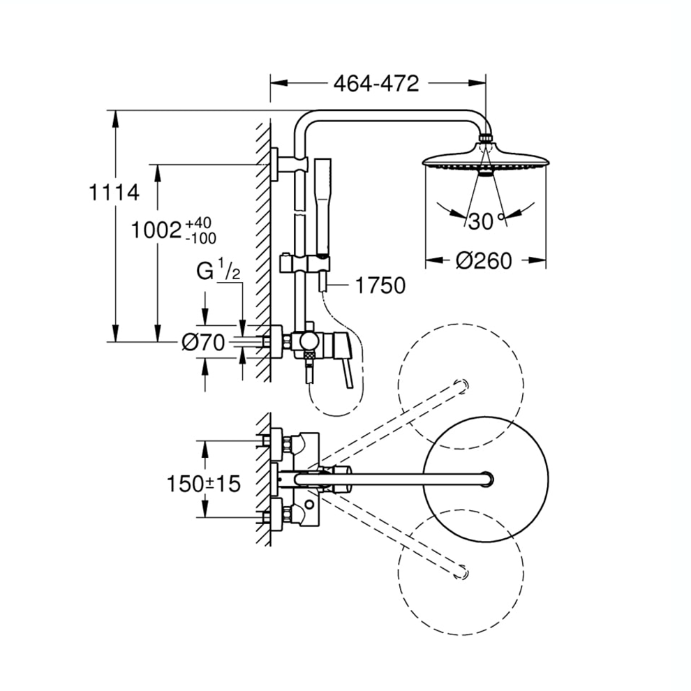 Grohe Euphoria System 260 Krom Duş Seti. Yatay döner duş kolu 450 mm. Tek kumandalı yön değiştiricili duş bataryası. Tepe duşu Euphoria 260 (26457). Rain SmartRain Jet. Mafsallı. Euphoria Cosmopolitan stick el duşu (27400000). Ayarlanabilir yükseklik. Silverflex duş hortumu 1750 mm (28388). SilkMove 46 mm seramik kartuş. DreamSpray mükemmel akış. Uzun ömürlü parlak krom kaplama. Su tasarruflu 9 5 lt/dk. akış limitleyici. Uzun ömür için Inner WaterGuide. SpeedClean kireç kırıcı sistem. TwistStop – dolanmayan hortum. Şok ısıtıcılar için uygun 18kW/h. En düşük akış miktarı 7 l/dk. Detaylı bilgi için Whatsapp üzerinden bize ulaşın.