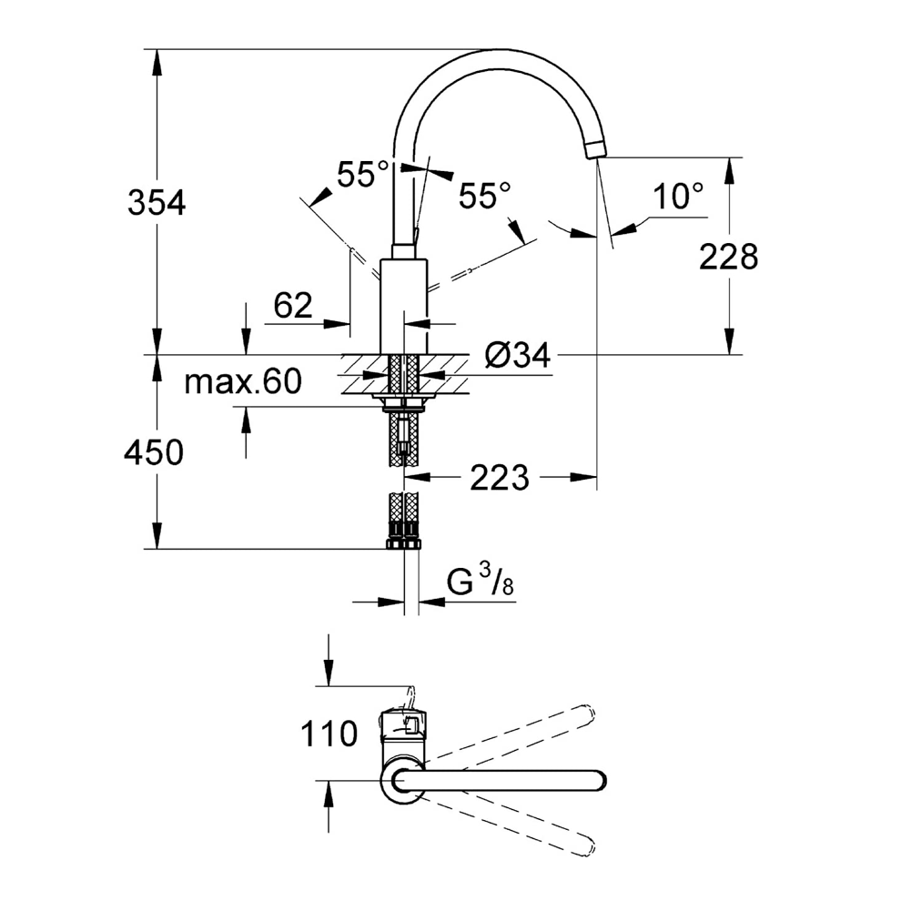 Grohe Eurocosmo Eviye Bataryası. Tek delikli montaj. Orta yükseklik. Metal kumanda kolu. SilkMove® 28 mm seramik kartuş. Sıcaklık limitleyici ile. StarLight® krom kaplama. EcoJoy® SpeedClean perlatör 5.7 l/dk.. Sifon kumanda seti 1 1/4. Spiral bağlantı hortumları. QuickFix™ Plus montaj sistemi. Önerilen en düşük basınç 1.0 bar Detaylı bilgi için Whatsapp üzerinden bize ulaşın.”