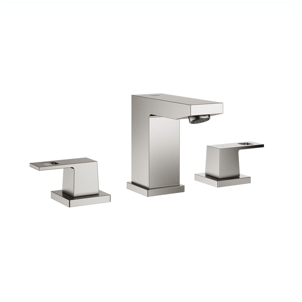 Grohe Eurocube S-Boyut Çift Kumandalı Üç Delikli Paslanmaz Çelik Lavabo Bataryası. Seramik salmastra 1/2 90°. Uzun ömürlü parlak kaplama. FastFixation Plus montaj sistemi. Perlatörlü çıkış ucu. Sifon kumanda seti 1 1/4″. Çıkış ucu ve yan valfler arasında basınca dayanıklı spiral bağlantı hortumlarıSuperSteel renkli şık Grohe Eurocube lavabo bataryası sıcak ve soğuk su için iki ayrı metal kumanda kolu ve karakteristik küp tasarımımızı yansıtan yüksek çıkış ucuyla tüm dikkatleri üzerine çeker. Şık görünümü kendisi kadar çekici işlevsel özelliklerle tamamlanıyor. Bataryada sifonu açıp kapatmayı sağlayan entegre sifon kumandası bulunur. Ekstra dayanıklı Grohe StarLight kaplamada normal kroma kıyasla çizilmeye karşı on kat daha fazla dayanıklılık için fiziksel buhar biriktirme (PVD) kullanılmıştır. Grohe QuickFix Plus sistemi sayesinde bataryayı hiç zorlanmadan göz açıp kapayıncaya kadar monte edebilirsiniz. Detaylı bilgi için Whatsapp üzerinden bize ulaşın.”