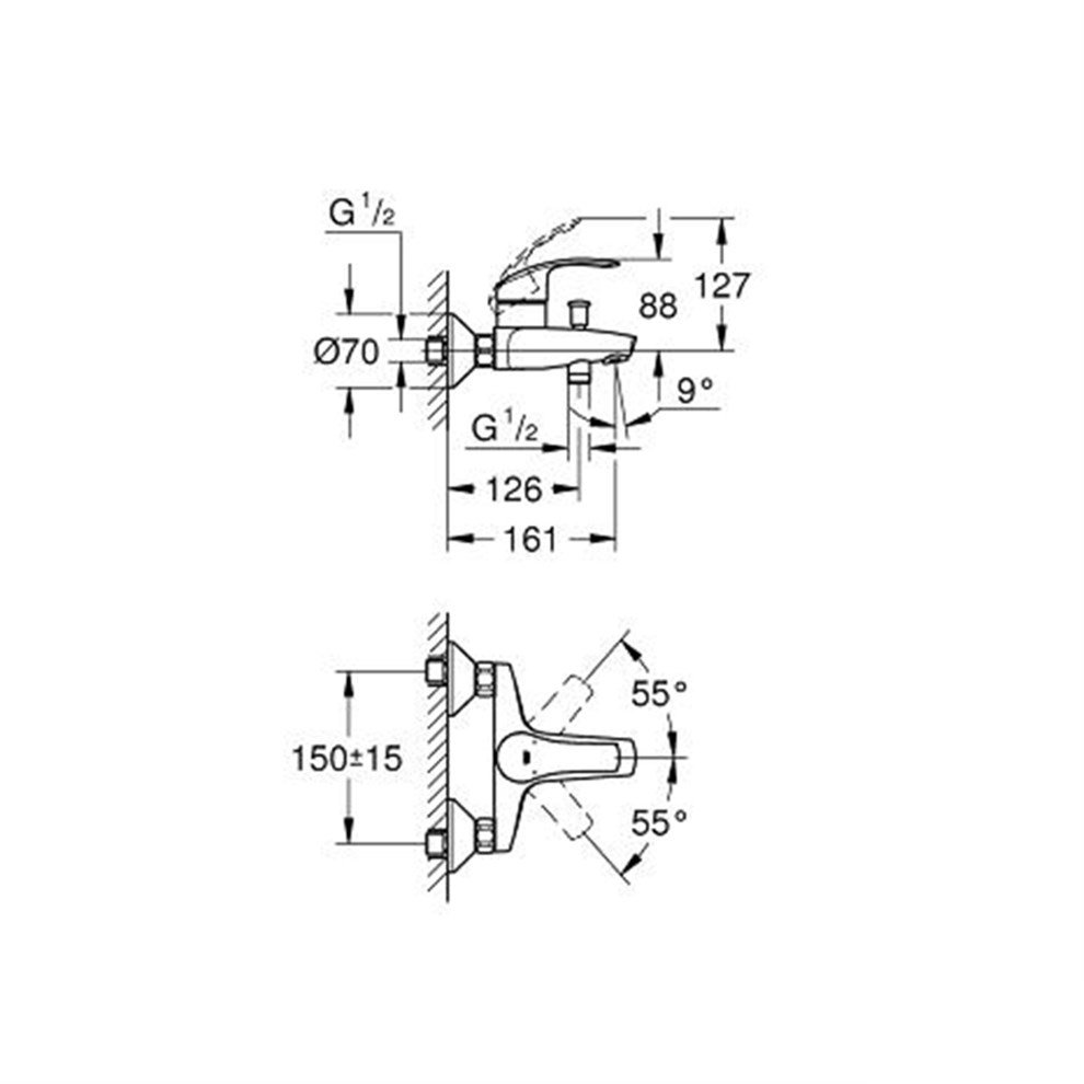 Grohe Eurosmart Banyo Bataryası. Metal kumanda kolu. Grohe SilkMove 35 mm seramik kartuş. Sıcaklık limitleyici ile. Grohe StarLight krom kaplama. Ayarlanabilir akış limitleyici. Otomatik yön değiştirici: banyo/duş. Perlatörlü. Duş çıkışında 1/2 entegre çek valf. Ekzantrik. Metal ayna. Entegre çek valf Detaylı bilgi için Whatsapp üzerinden bize ulaşın.”