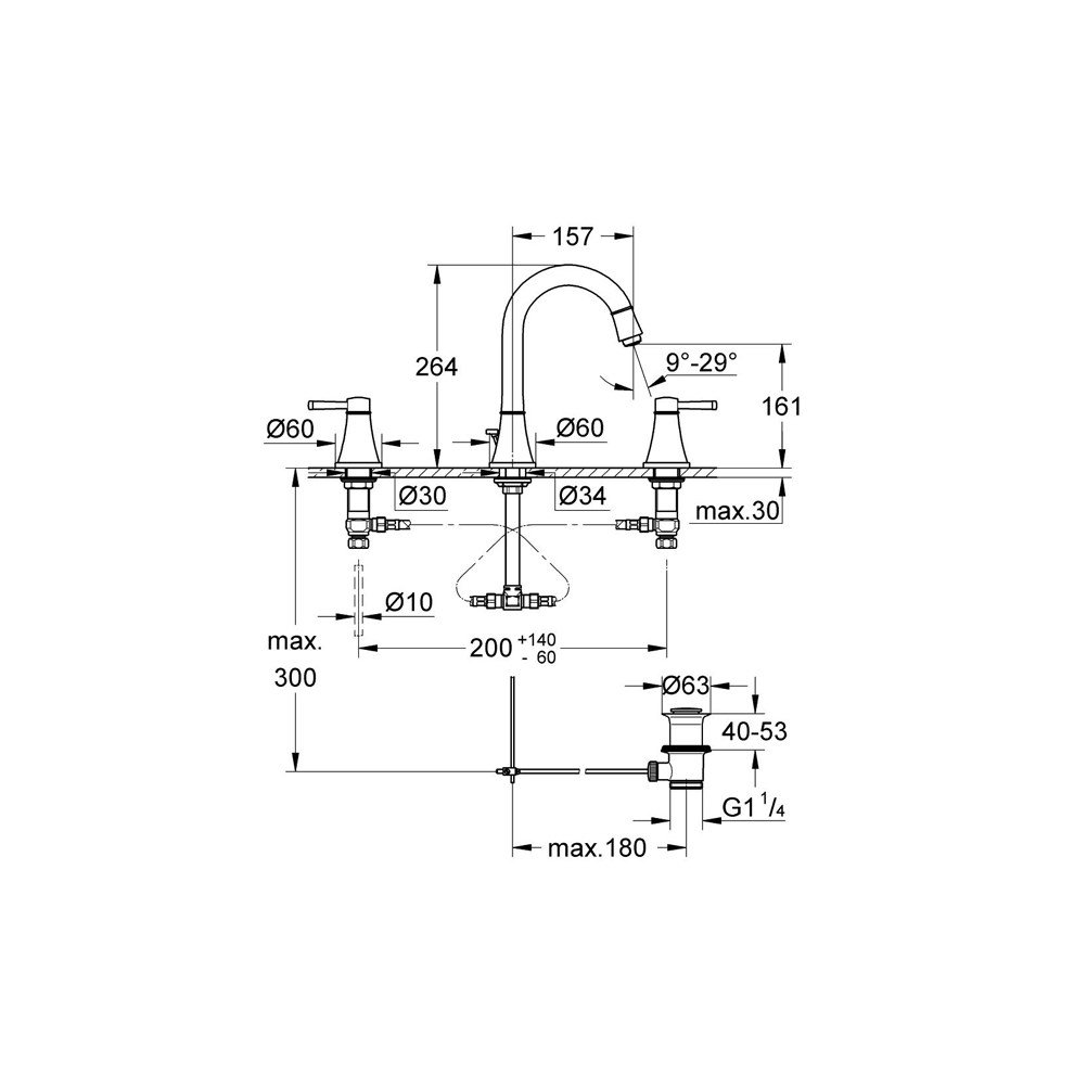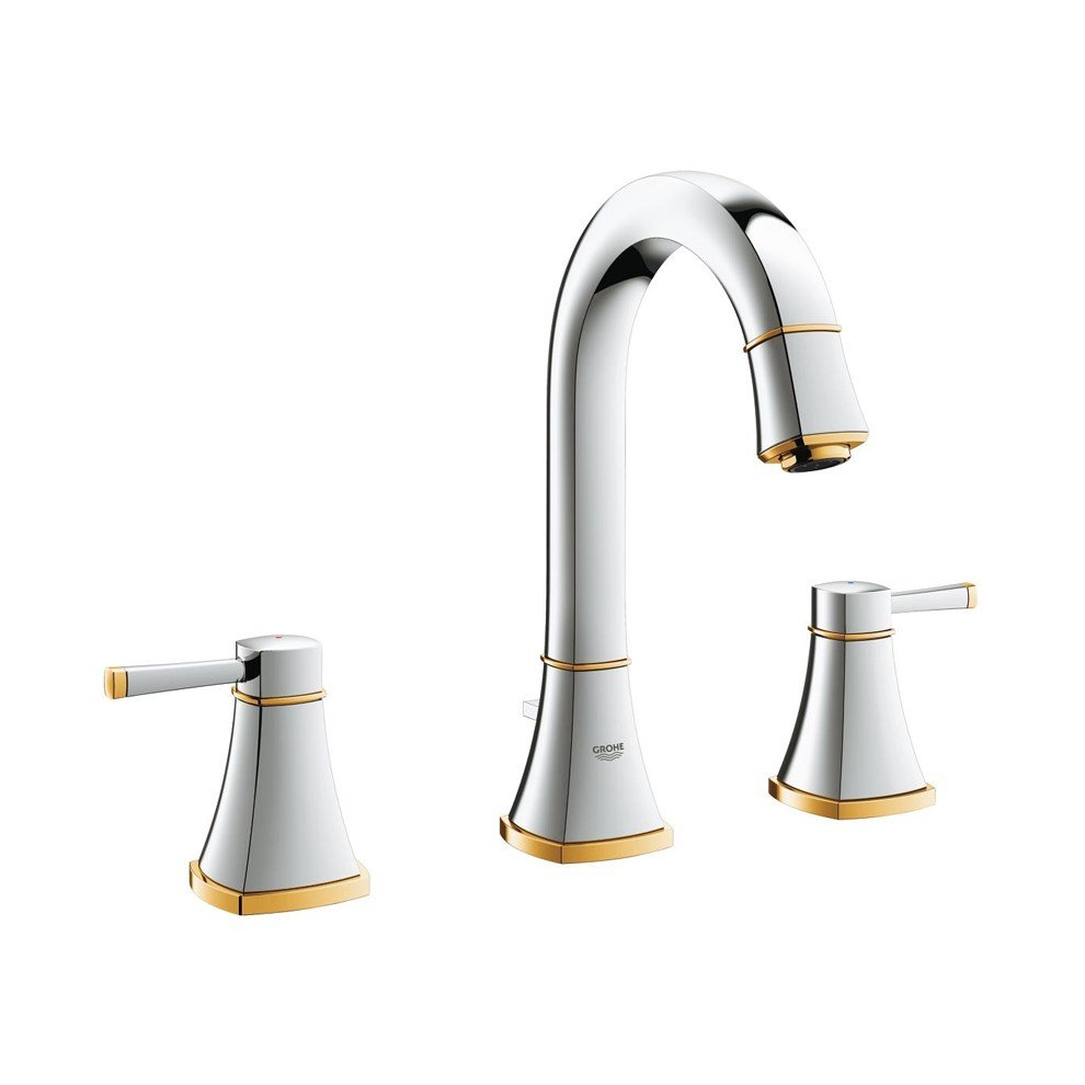Grohe Grandera 3 Delikli Lavabo Bataryası M-Boyut Krom-Altın. 1/2 – 90° salmastralı. GROHE StarLight krom kaplama. GROHE EcoJoy daha az su tüketimi ve mükemmel akış teknolojisi. GROHE AquaGuide 5.7 l/dk. ayarlanılabilir perlatör. Sifon kumanda seti 1 1/4″. Çıkış ucu ve yan valfler arasında basınca . Dayanıklı spiral bağlantı hortumları. Önerilen en düşük basınç 1.0 bar. Lavabo ve mutfak bataryaları ile birlikte filtreli ara musluk kullanılması tavsiye edilir.Temizlik için çizici sünger aşındırıcı temizleyiciler çözücü ya da asit içerikli temizleyiciler kireç çözücüler sirke ya da asetik asit içerikli temizleyiciler kullanmayınız. Detaylı bilgi için Whatsapp üzerinden bize ulaşın.”