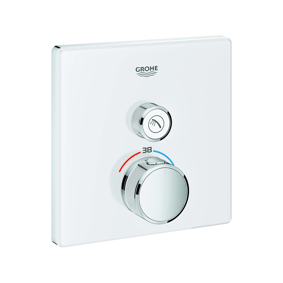 Grohe Grohtherm Smartcontrol Akış Kontrollü Ankastre Termostatik Beyaz Banyo Bataryası. Montaj için: Rapido Smartbox iç gövde 35604. FastFixation özellikli metal duvar rozeti 6° sağa sola ayarlanabilir. Uzun ömürlü parlak kaplama. Açma-kapama için SmartControl buton Grohe su tasarruflu akıştan tam akışa kadar hacim ayarlaması yapmak için kullanılır. Değiştirilebilir semboller. TurboStat ile sabit sıcaklık. ProGrip kolay tutuş için tırtıklı yüzey. SafeStop 38°C’de sabitlenebilir sıcaklık. SafeStop Plus ilave 43°C veya 46°C’ye kadar sabitleyici ısı ayarı. Entegre çek valf ve filtre. Ay beyazı akrilik gövde. Akış performansı:çıkış A (harici kapatma) = 34 l/minçıkış B/C = 29 l/min Ay Beyazı kaplamaya sahip Grohtherm SmartControl ankastre termostatın özgün estetik özellikleri termostatı ön plana çıkarır. Bu termostat sayesinde cesur tasarımın yanı sıra banyonuzu veya duşunuzu tam olarak istediğiniz şekilde kullanmak için gerekli kolaylığı ve hassasiyeti elde edebilirsiniz. Yenilikçi SmartControl teknolojisi su hacmini basılabilen ve döndürülebilen bir düğmeyle ayarlamanızı sağlar. Entegre Grohe TurboStat teknolojisi istenmeyen sıcaklık dalgalanmalarını engeller. Grohe EasyLogic işaretleri ve değiştirilebilir simgelere sahip baskılı düğmeleriyle termostatın kullanımı kolay ve sezgiseldir. Aileniz için uygun olan Grohe SafeStop kumanda düğmesi yanmaları önlemek için maksimum sıcaklığı 38°C olarak sabitler. Grohe SafeStop Plus isteğe bağlı sıcaklık sınırlayıcısı daha fazla güvenlik için 43°C’lik bir sınır daha eklemenizi sağlar. Su tasarrufu sağlayan Grohe EcoJoy teknolojisi keyfinizden taviz vermenize gerek kalmadan su akışını azaltma seçeneği sunar. Grohe QuickFix sistemi sayesinde montaj işlemi hızlı ve kolaydır. İnce profili sayesinde kolay temizlenir. Şık Grohe StarLight kaplama uzun yıllar boyunca yeni gibi görünmeye devam eder. Minimalist ve modern bir görünüm için ince ve kare bir tasarımı olan ürün banyo projenizi kesinlikle güzelleştirir. Lütfen bu ürünün Grohe Rapido SmartBox (35600000) ile birlikte kurulması gerektiğini unutmayın. Detaylı bilgi için Whatsapp üzerinden bize ulaşın.