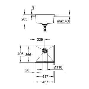 Grohe K700 50-C 46 cm Quartz Kompozit Tezgah Altı Eviye Siyah Granit. Tezgah altı bağlantı. Quartz kompozit. GROHE Whisper. Ebatlar: 457 x 406 mm. 1.Hazne: 417 x 366 mm. GROHE QuickFix hızlı montaj sistemi. Cut-out: 543 x 393 mm. Süzgeç: Ø 3 5 / 90 mm süzgeçli gider. Dahil olan aksesuarlar: gider seti süzgeçli gider ve montaj seti Detaylı bilgi için Whatsapp üzerinden bize ulaşın.”
