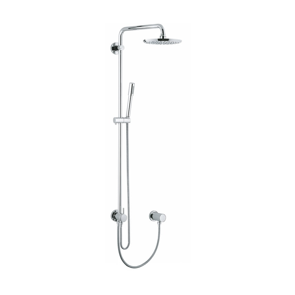 Grohe Rainshower 210 Divertörlü Krom Duş Sistemi. Yatay döner duş kolu 450 mm. Yön değiştirici sayesinde tepe duşu ve el duşu arası geçiş: Tepe duşu Rainshower Cosmopolitan 210 (28368000). Mafsallı. ± 15° dönüş açısı. El duşu Sena (28034000). Ayarlanabilir duş sürgüsü (12140000). Metal duş hortumu 1750 mm. 1/2 dişli duş hortumundan batarya/dirsek ile suya bağlantı. DreamSpray mükemmel akış. Uzun ömürlü parlak krom kaplama. SpeedClean kireç kırıcı sistem. Uzun ömür için Inner WaterGuide. En düşük akış miktarı 7 l/dk.Lüks bir duş istiyorsanız Grohe Rainshower 210 duş sistemi THM sizin için mükemmel bir seçenektir. Yaz yağmurunu andıran hafif serpinti spreyi ile duş alma hissinin keyfini çıkarın. İsterseniz daha dinamik ve odaklı bir sprey de tercih edebilirsiniz. Küresel bir mafsala monte edilen ve döner kola sahip duş sistemi duşta kişisel alanınızı oluşturmanız için tepe duşunun açısını ayarlamanızı sağlar. Duvar rayındaki kayar parça sayesinde sütun biçimindeki şık el duşunun yüksekliğini istediğiniz zaman ayarlayabilirsiniz. Göz alıcı ve çizilmeye karşı dayanıklı Grohe StarLight krom kaplama ışıltısını yıllarca korur. Kaplamanın üstünde silikon kireç önleyici nozüller bulunur. Bu nozüllerin temizlenmesi son derece kolaydır. Duş keyfi garanti altında! Detaylı bilgi için Whatsapp üzerinden bize ulaşın.”